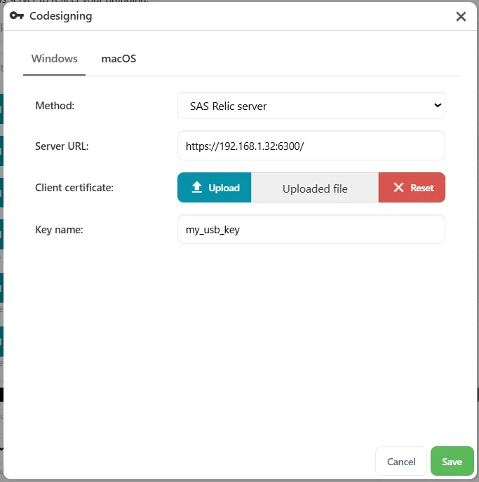 In Comet 25.9.2, SAS Relic is now supported as a remote server for codesigning Windows clients.